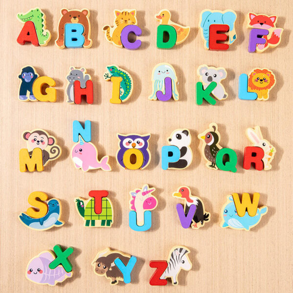 Large Animal Wood Letter Matching Puzzle Blocks Game Early Education Enlightenment Toy for 2-4 Years Old Kids for Kindergarten